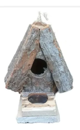 Casita para colgar , 20 cm aprox. fabricado en tronco de madera . Apto exterior