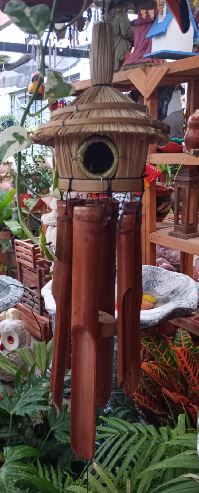 Llamador de angeles de hambu con casita de pájaros 69 cm aprox.