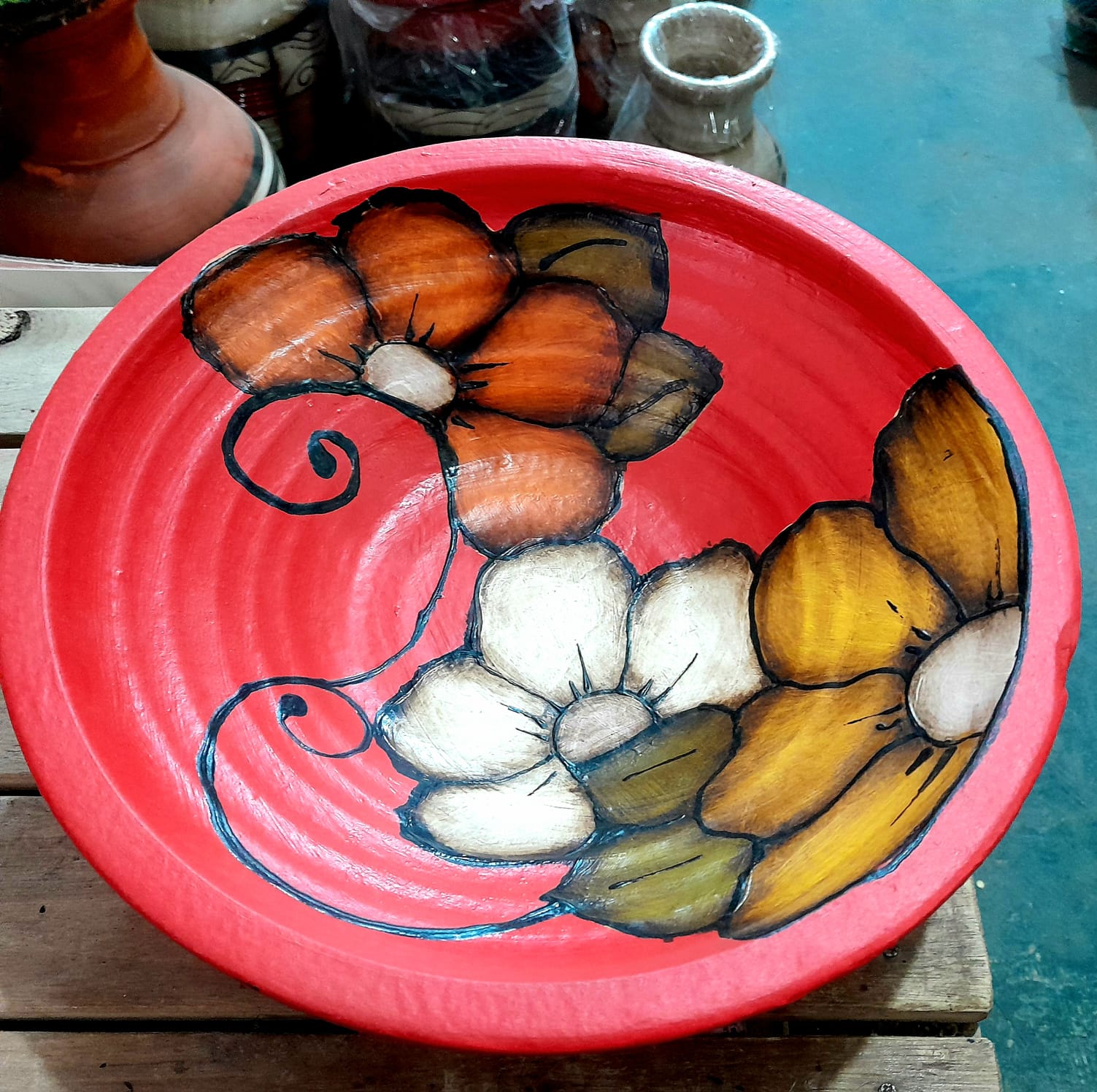 30 cm aprox. Realizados en Alfareria, enduidos y barnizados. aptos para exterior. Multiples usos como fruteros y centros de mesa entre otros.