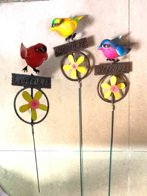 Tutor con molino pajaritos. 15 cm aprox, 1 mts altura